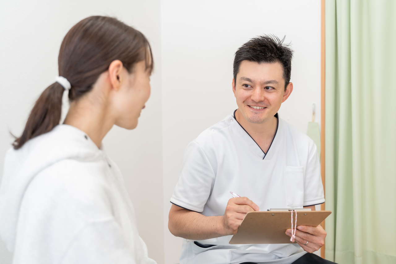 当院ではアフターカウンセリングをしっかりと行います。お身体の状態、施術後の注意点、日常生活での注意点、通院頻度などをしっかりとお伝えします。患者さんに納得・理解していただけるように心がけています。