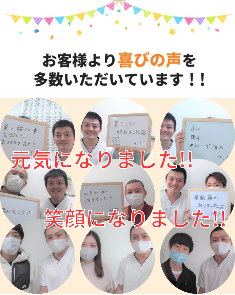 申し訳ありませんが、施術を受けると必ず良くなるとは言えません。個人差(日常生活の癖、生活習慣、症状が出てからの日数など)がある為、同じ症状で、同じ施術をやっても結果が違う事もあります。ただ、あなたの症状改善のために、やれる事はどんな事でもやっていきます。この気持ちだけは誰にも負けません。